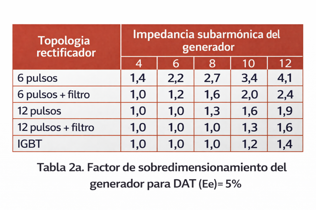 Por tanto, la clave en la relación empírica entre el factor de sobredimensionamiento de la planta de emergencia y la Distorsión Armónica normalizada de la corriente generada por el UPS, se encuentra en el tipo de rectificador con el que cuenta el UPS. Ver Tabla 1.