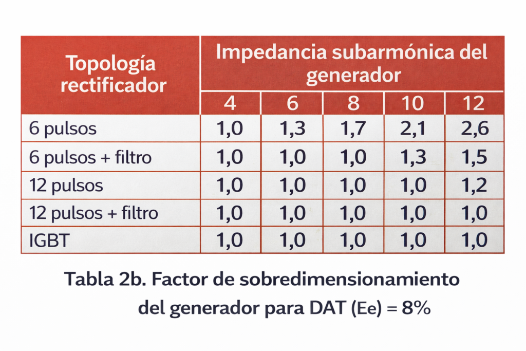De la tabla 2b se obtiene un factor de sobredimensionamiento de 1,5. Por lo tanto, el tamaño mínimo del generador debe ser:
