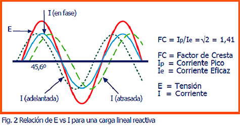 La relación de fase entre la tensión y la corriente es como se muestra a continuación. Ver Fig. 2